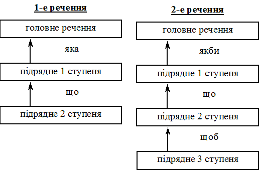 ступеня. Структуру наведених складнопідрядних речень з послідовною підрядністю