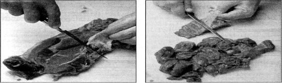 краев говядины под прямым углом. Куски должны иметь овально-продолговатую форму