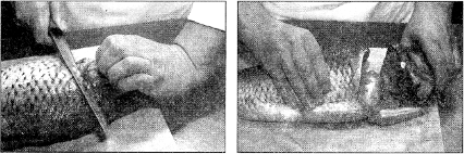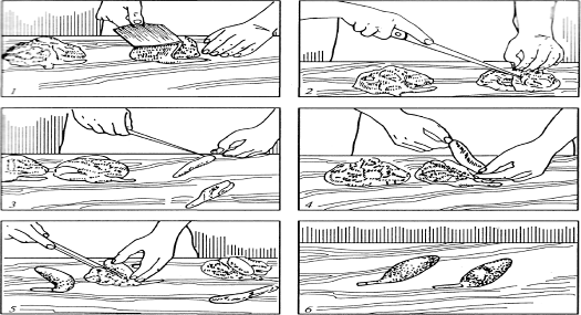 разрезают его вдоль, распрямляют в обе стороны и слегка отбивают тяпкой до