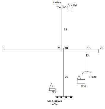 Склад щебеню (пікет)- 12 км;
