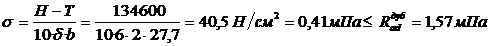 Смятие пояса под частью подушки, на которую опирается раскос N3