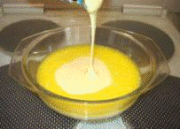 Муку просеивают в миску холмиком. В середине его делают углубление, в