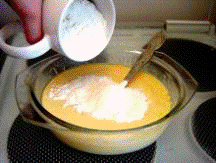 Муку необходимо просеять. Не следует долго взбивать тесто - муку вводят