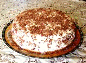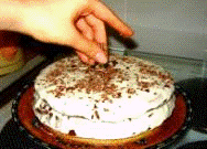 бока торта смазать кремом и обсыпать тертым шоколадом.