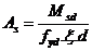 длина арматурных выпусков из колонны. При этом требуемая площадь арматуры As,reg
