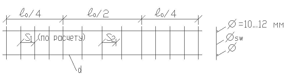 участке длиной 1000 мм хомуты устанавливаются с шагом не более 10Ø=10x22=220