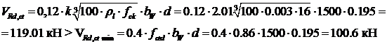 VRd,ct >VRd,ct,min принимаем VRd,ct=175,0 Н/мм