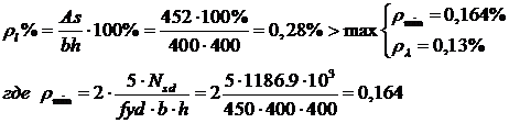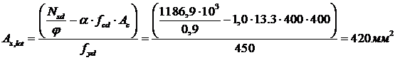 следующих данных: сечение колонны 400x400мм, продольная арматура колонны 4Ø12 класса S500, расчетное усилие, передаваемое колонной Nsd=1186,9 кН.