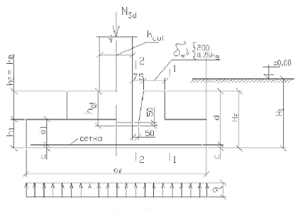 размеров подошвы фундамента.