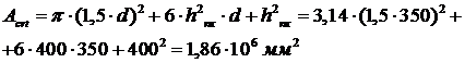 (полосы) фундамента, равной hпк+3d=450+3×350=1500
