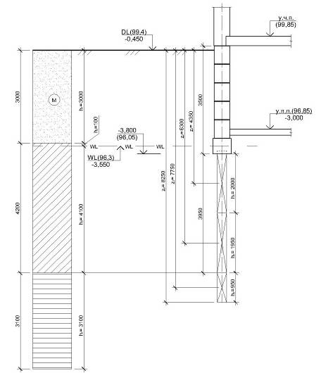 изучения данных на проектирование, скважины прошли 4 слоя грунта. Глубина их