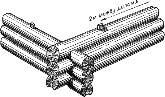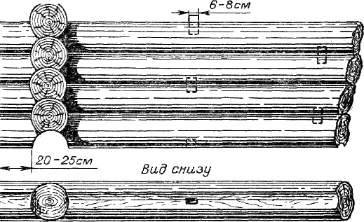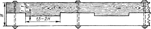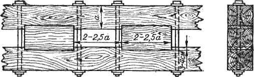 посредине толщины брусьев в том направлении, как указано для скоб.