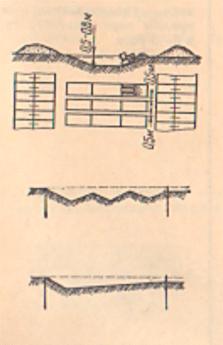 траншеи; срезки грунта на косогорах (для нарезки уступов, устройства полу