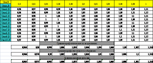 данные и рассчитываем среднеарифметическое значение выходного напряжения в