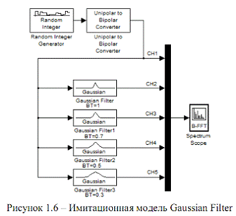 стандарта GMSK. В блоке GMSK Modulator BT последовательно установив равным 1;0,7;0,5;0,3.