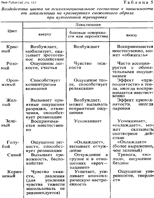 воздействии цвета, приведенные в табл.