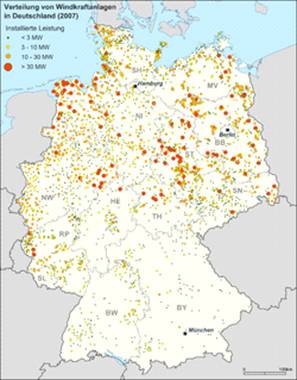 сравнении с 2005 годом. В 2007 году в Германии было построено 1625 МВт. новых