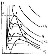 (рис.1) показані ізотерми побудовані за рівнянням Ван-дер-Ваальса. Точка А