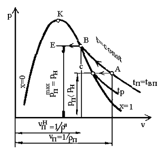 (А-В), оскільки кількість водяної пари в ньому змінюється. Процес охолодження
