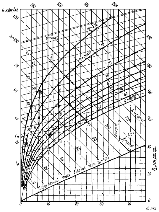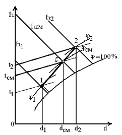 отримаємо точку С, яка характеризує стан суміші вологого повітря з параметрами hCМ і dСМ.