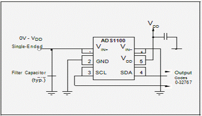 ADS1100 без проміжних підсилювачів приладів; однієї, невеликий конденсатор вхід