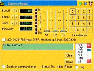 VMLab, програма видає свідчення сили струму за допомогою цифрового амперметра.
