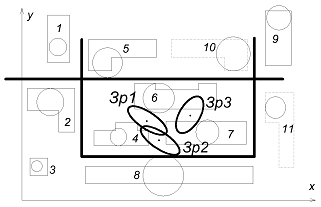 Нанесение зон рассеяния центров нагрузок на