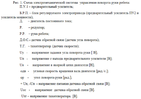 система управления руки робота, в таблице 1- параметры двигателя, в таблице 2-