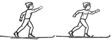 Показать на наглядном материале, как при передвижении на лыжах в достаточно