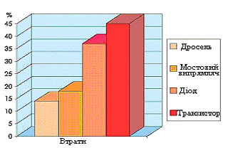 типова діаграма розподілу втрат в активних компонентах схеми. Як наведено на