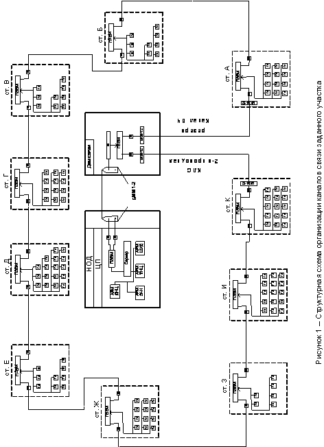 Схема организации каналов связи заданного диспетчерского участка