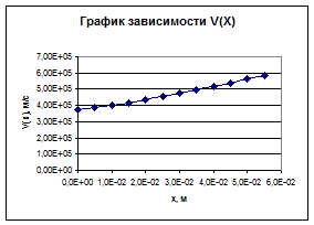 В результате расчетов мы получили зависимости V(x) и at(t):