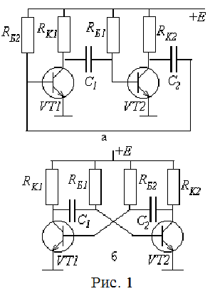 Звичайно мультивібратор зображають у вигляді симетричної схеми (рис.5.1б).