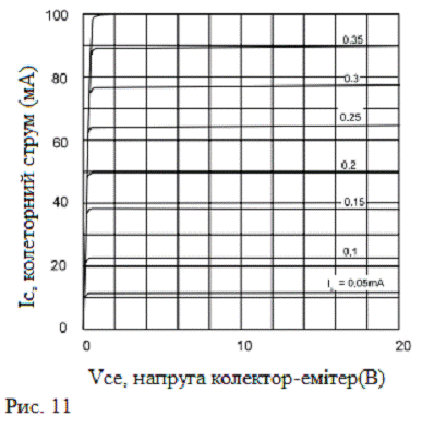 графічна залежність струму колектора від напруги колектор -емітер.