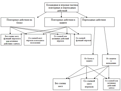 действий игроков при переходах от блока к защите существенно определяют