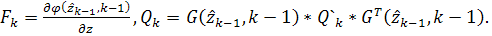 матрица, Q,R,V - ковариоционные матрицы шумов, y - измерения, k - количество