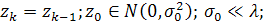 параметр сглаживается к среднему значению, а дисперсия убывает от шага к шагу.