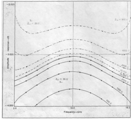 предложенным методом, были рассчитаны Zoe=10.000 Ом (то есть, Yoe = 0,0001) и для семи значений Zoo между 20 и 50 ОМ. Полоса пропускания