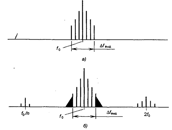 т.д., а также субгармоники, т.е. сигналы с более низкой частотой f0 /n. Кроме того, возможно излучение так называемых