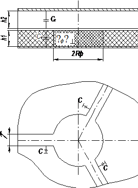 подводящих микрополосковых линий, а на ферритовом вкладыше помещается