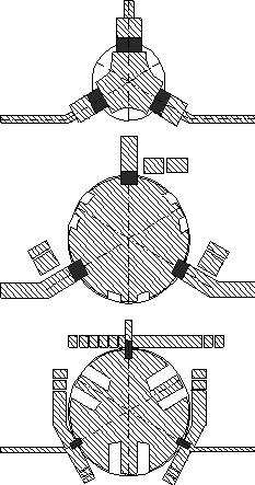 центру развязанного порта 3-плечего соединения, а в центрах входного и