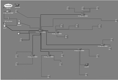 Моделирование ЛВС проходило в программе NetEmul
