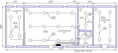 Нормоване значення освітлення згідно становить 75 лк, площа приміщення - 10,5 м2.