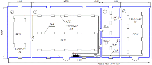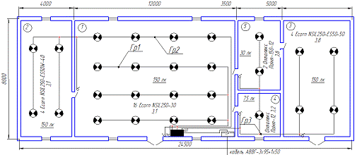 дільниця.Нормоване значення освітлення згідно становить 150 лк, площа