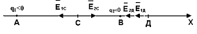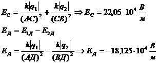 та В). У якій точці, С чи Д, напруженість поля більша? Потенціал?