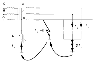 нейтралей силовых трансформаторов и генераторов, глухое, либо через дугогасящий