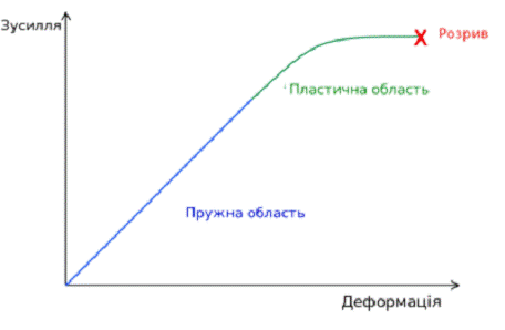 починає проявлятися незворотна пластичність або тіло рветься, застосування