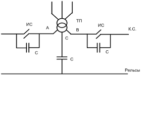 кВ и к рельсам выключателем Q. Последовательно с конденсаторами установлен