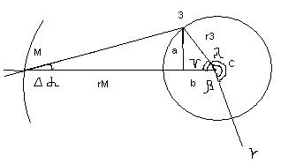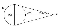 ) і знаючи координату схилення d (AB) обчислити кут e між горизонтом і планетою за виразом: