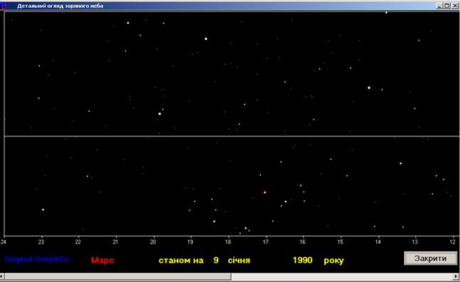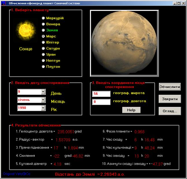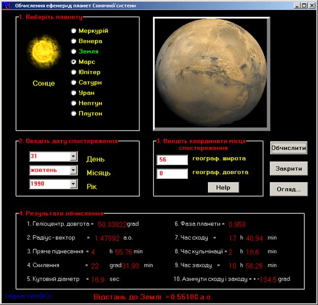 мериди Марса на 31 жовтня 1990р. Результати, які видала програма на цю да-